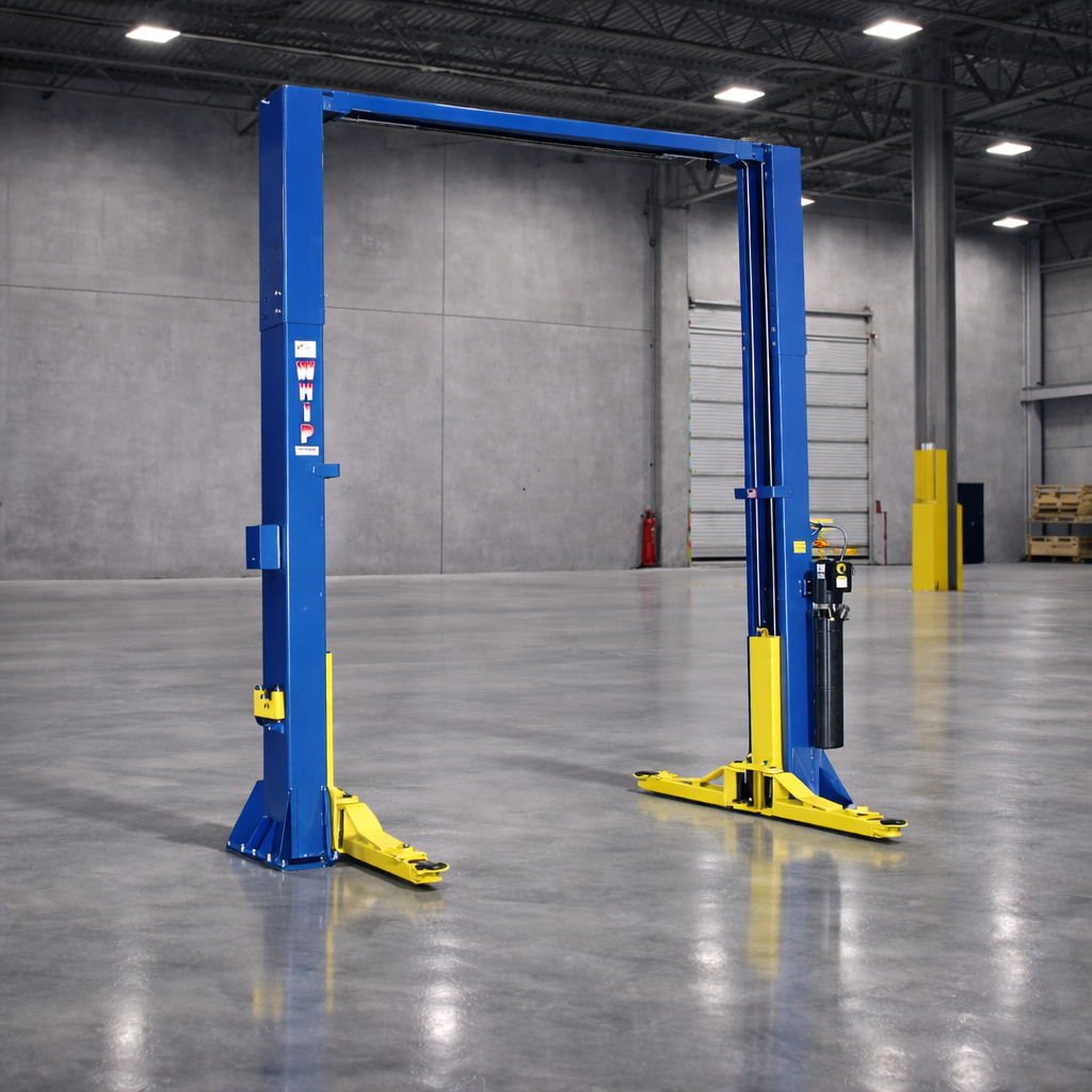 15,000 lb Capacity heavy duty symmetric two post lift. 14′ 6″ Overall height. Includes set of 2″, 4″ and 6″ height adapters. Adjustable cross bridge. Single-point lock release.